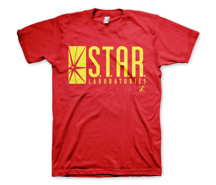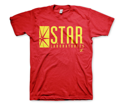 - grafika: Żółty napis Star Laboratories . Kolor koszulki czerwony