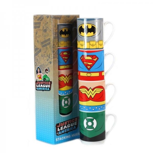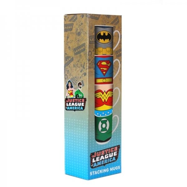Batman, Superman, Wonder Woman i Green Lantern na 4 dużych kubkach w pionowym opakowaniu.