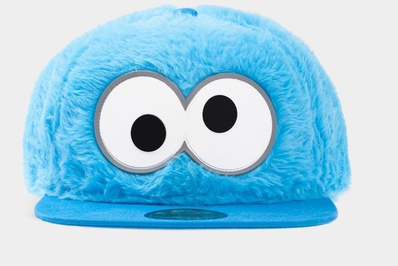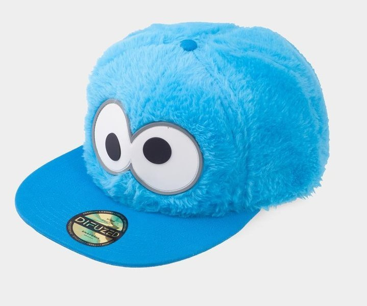 Czapka z oczami Ciasteczkowego Potwora i futerkiem.