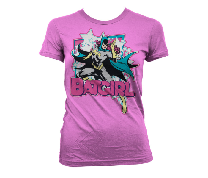 - grafika:Kolorowa Batgirl w otoczeniu gwiazd . Kolor koszulki różowy