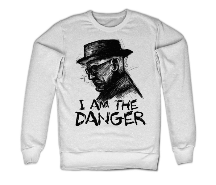 - grafika: Głowa Heisenberga i napis I am the danger . Białe tło